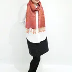 さらにアクセントとしてならカジュアルな装いにも合わせやすい、とても使い勝手の良いストールです。