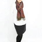 縦の長さが220cm、横幅105cmの特大ショールサイズで、ゆるっと巻くだけで立体的でボリューム感のある表情を作り出せます。広げて羽織れば上半身をすっぽりと覆うことができるのでトップスを気にせず合わせることができます。秋冬のアウター代わりにはもちろん、真夏の室内での冷房対策や膝掛けとしても使いやすくなっています。