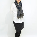 縦の長さが220cm、横幅105cmの特大ショールサイズで、ゆるっと巻くだけで立体的でボリューム感のある表情を作り出せます。広げて羽織れば上半身をすっぽりと覆うことができるのでトップスを気にせず合わせることができます。秋冬のアウター代わりにはもちろん、真夏の室内での冷房対策や膝掛けとしても使いやすくなっています。