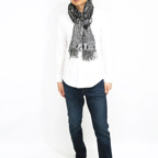 非常に大きなショールサイズで、ボリュームも十分。小顔効果も期待できます。