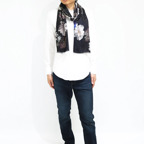 生地感よりカジュアルな普段使いにも、少しフォーマルなシーンでも使いやすいタイプです。スタイルや場所を問わず合わせることができる優れたストールです。