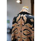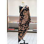 生地の厚みと刺繍の重量感も手伝って、すとんと流れるような落ち感が絶妙です。纏うだけで、まるで何かに守られているかのような安心感を得ることができます。