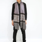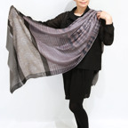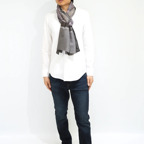 バランスの良い大判サイズで、巻きでも羽織でもどちらも使いやすいストールです。特に羽織は全面に施された刺繍が美しく輝き、サッとあしらうだけで全体の印象を大きく変えてくれます。