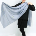 バランスの良い大判サイズで、巻きでも羽織でもどちらも使いやすいストールです。特に羽織は全面に施された刺繍が美しく輝き、サッとあしらうだけで全体の印象を大きく変えてくれます。
