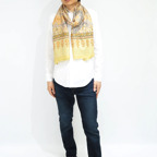 スタンダードな大判サイズで、巻きでも羽織でもどちらも使いやすいストールです。特に羽織は全面に施された刺繍が美しく輝き、サッとあしらうだけでエレガントな雰囲気に変化します。