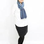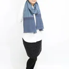 生地感よりカジュアルな普段使いにも、少しフォーマルなシーンでも使いやすいタイプです。スタイルや場所を問わず合わせることができる優れたストールです。