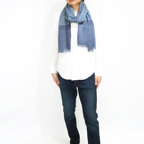 生地感よりカジュアルな普段使いにも、少しフォーマルなシーンでも使いやすいタイプです。スタイルや場所を問わず合わせることができる優れたストールです。