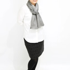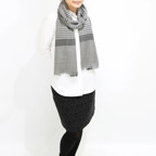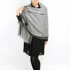 生地感よりカジュアルな普段使いにも、少しフォーマルなシーンでも使いやすいタイプです。スタイルや場所を問わず合わせることができる優れたストールです。