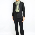 生地感よりカジュアルな普段使いにも、少しフォーマルなシーンでも使いやすいタイプです。スタイルや場所を問わず合わせることができる優れたストールです。