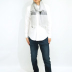 生地感よりカジュアルな普段使いにも、少しフォーマルなシーンでも使いやすいタイプです。スタイルや場所を問わず合わせることができる優れたストールです。