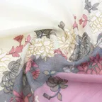 見ているだけでため息が出てしまいそうな美しい刺繍。バランスの良い配色でどんな纏い方をしても上品に装えます。