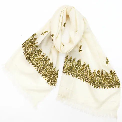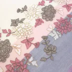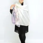 全面に施されたアーリ刺繍が美しく、品の良い女性らしい装いを叶えてくれます。カジュアルな普段使いはもちろん、フォーマルなシーンにも使いやすく、さらに和装とも相性が非常に良くなっています。スタイルや場所を問わず合わせることができる優れたストールです。