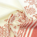 全面に施されたアーリ刺繍が美しく、品の良い女性らしい装いを叶えてくれます。カジュアルな普段使いはもちろん、フォーマルなシーンにも使いやすく、さらに和装とも相性が非常に良くなっています。スタイルや場所を問わず合わせることができる優れたストールです。