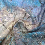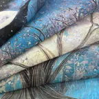 美しく幻想的なモチーフ。アートのように美しい、価値あるコットンシルクスカーフです。