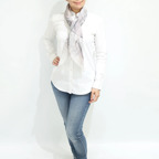 88cm×88cmの大判スカーフで、首元のアクセントに最適。アスコットタイのようにシャツやブラウスの中におさめて使うこともできますし、対角で畳んで肩から羽織ることもできます。また、身につけるだけでなく、手持ちのバッグにキュッと結べるアクセサリーとしても重宝します。