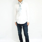 88cm×88cmの大判スカーフで、首元のアクセントに最適。アスコットタイのようにシャツやブラウスの中におさめて使うこともできますし、対角で畳んで肩から羽織ることもできます。また、身につけるだけでなく、手持ちのバッグにキュッと結べるアクセサリーとしても重宝します。