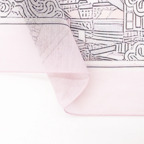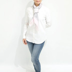 88cm×88cmの大判スカーフで、首元のアクセントに最適。アスコットタイのようにシャツやブラウスの中におさめて使うこともできますし、対角で畳んで肩から羽織ることもできます。また、身につけるだけでなく、手持ちのバッグにキュッと結べるアクセサリーとしても重宝します。