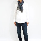 スタンダードな大判サイズで、首に巻くことはもちろん、室内でのひざ掛けにも、肩から羽織る使い方もできます。特に羽織りは、パッと華やかにエレガントな雰囲気に変わります。上半身を覆えるので、着ている服を気にせず合わせることができます。忙しい朝もコーディネートを気にする必要はありません。