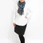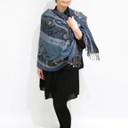 スタンダードな大判サイズで、首に巻くことはもちろん、室内でのひざ掛けにも、肩から羽織る使い方もできます。特に羽織りは、パッと華やかにエレガントな雰囲気に変わります。上半身を覆えるので、着ている服を気にせず合わせることができます。忙しい朝もコーディネートを気にする必要はありません。