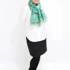 スタンダードな大判サイズで、首に巻くことはもちろん、室内でのひざ掛けにも、肩から羽織る使い方もできます。特に羽織りは、パッと華やかにエレガントな雰囲気に変わります。上半身を覆えるので、着ている服を気にせず合わせることができます。忙しい朝もコーディネートを気にする必要はありません。
