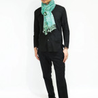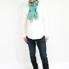 スタンダードな大判サイズで、首に巻くことはもちろん、室内でのひざ掛けにも、肩から羽織る使い方もできます。特に羽織りは、パッと華やかにエレガントな雰囲気に変わります。上半身を覆えるので、着ている服を気にせず合わせることができます。忙しい朝もコーディネートを気にする必要はありません。