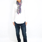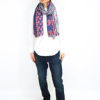 異なる色柄を組み合わせた独創的な一枚。ゆるっと巻くだけでアクセント効果が高くなっています。