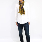 生地感よりカジュアルな普段使いにも、少しフォーマルなシーンでも使いやすいタイプです。スタイルや場所を問わず合わせることができる優れたストールです。