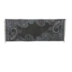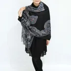 スタンダードな大判サイズで、首に巻くことはもちろん、室内でのひざ掛けにも、肩から羽織る使い方もできます。特に羽織りは、パッと華やかにエレガントな雰囲気に変わります。上半身を覆えるので、着ている服を気にせず合わせることができます。忙しい朝もコーディネートを気にする必要はありません。