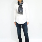 透け感のある生地で想像以上にスッキリまとまります。アウターの中にも収めやすく、インにアウトに扱いやすいストールです。