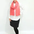 200cm×70cm大判サイズで、巻きでも羽織でもどちらも使いやすいストールです。上半身をすっぽりと覆うことができるため、トップスを気にせず合わせることができます。