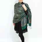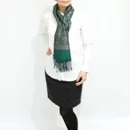 スタンダートな大判サイズで巻いても羽織っても、どちらも使いやすいタイプです。特に羽織は全体の印象が大きく変わります。
