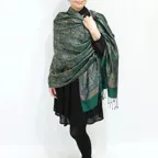 糸そのものの美しい光沢感とジャカード織機で製作された独創的なデザインが相まった他にはないシルクストールに仕上がっています。
