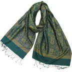 糸そのものの美しい光沢感とジャカード織機で製作された独創的なデザインが相まった他にはないシルクストールに仕上がっています。