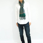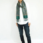スタンダートな大判サイズで巻いても羽織っても、どちらも使いやすいタイプです。特に羽織は全体の印象が大きく変わります。