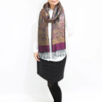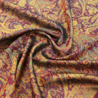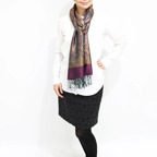 糸そのものの美しい光沢感とジャカード織機で製作された独創的なデザインが相まった他にはないシルクストールに仕上がっています。