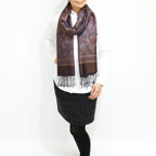 スタンダートな大判サイズで巻いても羽織っても、どちらも使いやすいタイプです。特に羽織は全体の印象が大きく変わります。