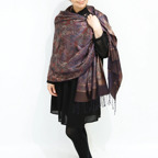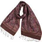 糸そのものの美しい光沢感とジャカード織機で製作された独創的なデザインが相まった他にはないシルクストールに仕上がっています。