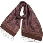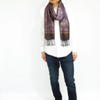 糸そのものの美しい光沢感とジャカード織機で製作された独創的なデザインが相まった他にはないシルクストールに仕上がっています。