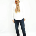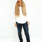 スタンダードな大判サイズで、首に巻くことはもちろん、室内でのひざ掛けにも、肩から羽織る使い方もできます。特に羽織りは、パッと華やかにエレガントな雰囲気に変わります。上半身を覆えるので、着ている服を気にせず合わせることができます。忙しい朝もコーディネートを気にする必要はありません。
