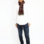 マンネリファッションを脱するならこんなストールがオススメ!メンズライクな織り柄が知的な大人らしさを引き立てます。