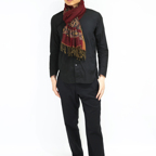 スタンダードな大判サイズで、首に巻くことはもちろん、室内でのひざ掛けにも、肩から羽織る使い方もできます。特に羽織りは、パッと華やかにエレガントな雰囲気に変わります。上半身を覆えるので、着ている服を気にせず合わせることができます。忙しい朝もコーディネートを気にする必要はありません。