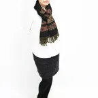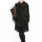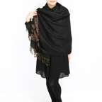 スタンダードな大判サイズで、首に巻くことはもちろん、室内でのひざ掛けにも、肩から羽織る使い方もできます。特に羽織りは、パッと華やかにエレガントな雰囲気に変わります。上半身を覆えるので、着ている服を気にせず合わせることができます。忙しい朝もコーディネートを気にする必要はありません。