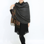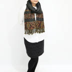 スタンダードな大判サイズで、首に巻くことはもちろん、室内でのひざ掛けにも、肩から羽織る使い方もできます。特に羽織りは、パッと華やかにエレガントな雰囲気に変わります。上半身を覆えるので、着ている服を気にせず合わせることができます。忙しい朝もコーディネートを気にする必要はありません。