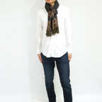 スタンダードな大判サイズで、首に巻くことはもちろん、室内でのひざ掛けにも、肩から羽織る使い方もできます。特に羽織りは、パッと華やかにエレガントな雰囲気に変わります。上半身を覆えるので、着ている服を気にせず合わせることができます。忙しい朝もコーディネートを気にする必要はありません。