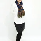 スタンダードな大判サイズで、首に巻くことはもちろん、室内でのひざ掛けにも、肩から羽織る使い方もできます。特に羽織りは、パッと華やかにエレガントな雰囲気に変わります。上半身を覆えるので、着ている服を気にせず合わせることができます。忙しい朝もコーディネートを気にする必要はありません。