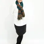 スタンダードな大判サイズで、首に巻くことはもちろん、室内でのひざ掛けにも、肩から羽織る使い方もできます。特に羽織りは、パッと華やかにエレガントな雰囲気に変わります。上半身を覆えるので、着ている服を気にせず合わせることができます。忙しい朝もコーディネートを気にする必要はありません。
