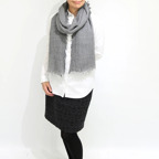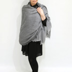 非常に大きなショールサイズで、広げて羽織れば上半身をすっぽりと覆うことができます。縦横の長さも十分にあるため、巻き方の自由度が広がります。程よいボリューム感と立体感を簡単につくることができるため、一巻きでこなれた印象になります。面積もあるので、真夏の室内での冷房対策や膝掛けとしても使いやすくなっています。
