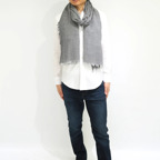 非常に大きなショールサイズで、広げて羽織れば上半身をすっぽりと覆うことができます。縦横の長さも十分にあるため、巻き方の自由度が広がります。程よいボリューム感と立体感を簡単につくることができるため、一巻きでこなれた印象になります。面積もあるので、真夏の室内での冷房対策や膝掛けとしても使いやすくなっています。