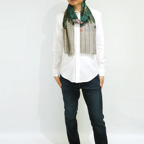生地感よりカジュアルな普段使いにも、少しフォーマルなシーンでも使いやすいタイプです。スタイルや場所を問わず合わせることができる優れたストールです。