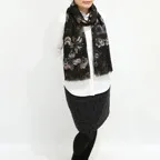 生地感よりカジュアルな普段使いにも、少しフォーマルなシーンでも使いやすいタイプです。スタイルや場所を問わず合わせることができる優れたストールです。